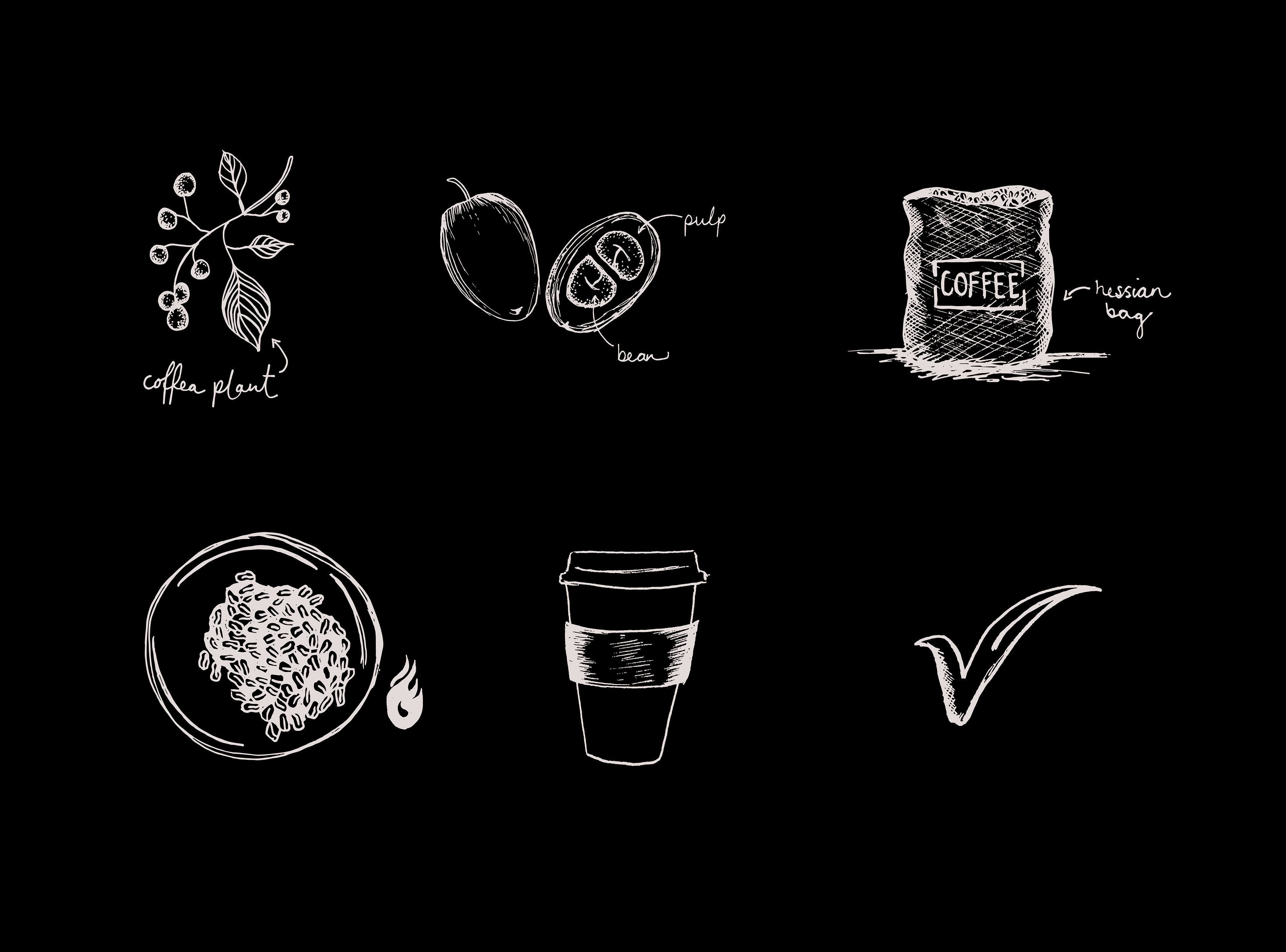 Nothing but Organic Coffee - A2 poster design representing the 'Life Cycle of a Coffee Bean'. Project brief included poster design and illustrated icon designs. Icons are also used separately in the branding.