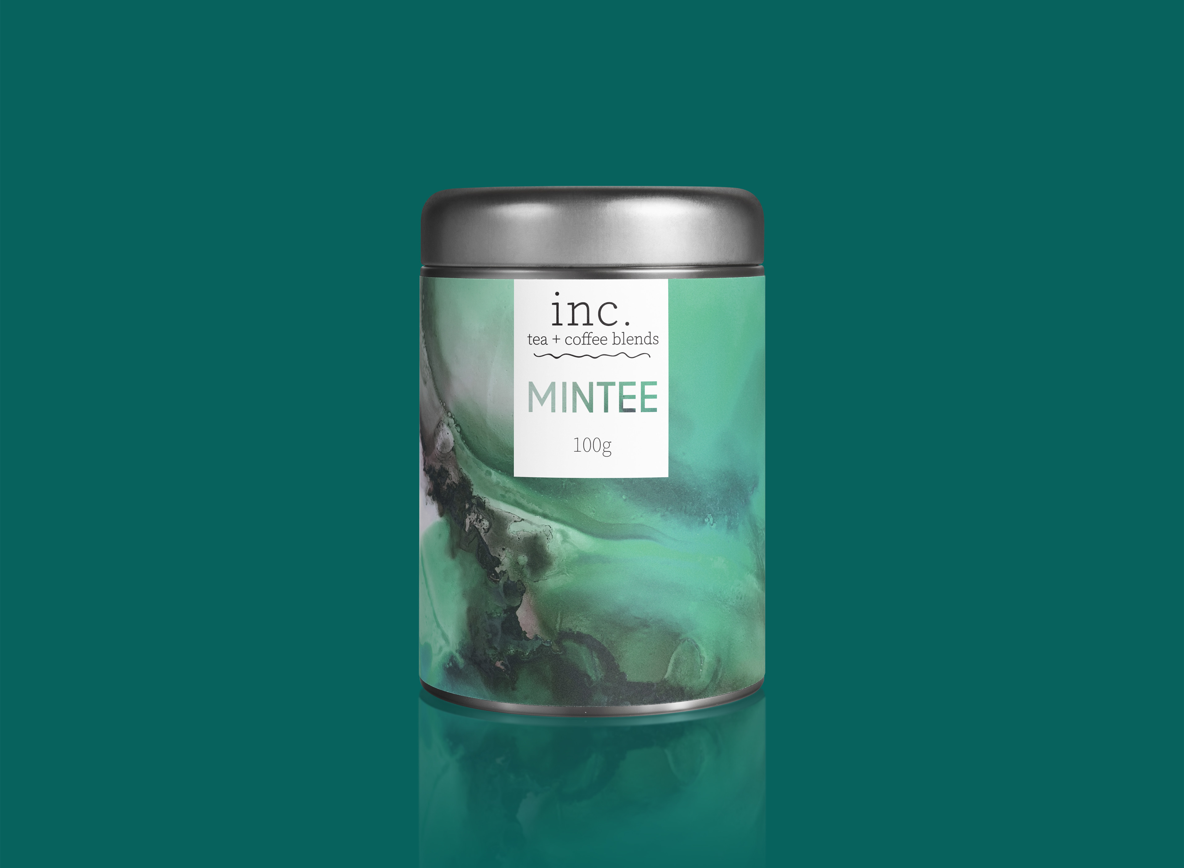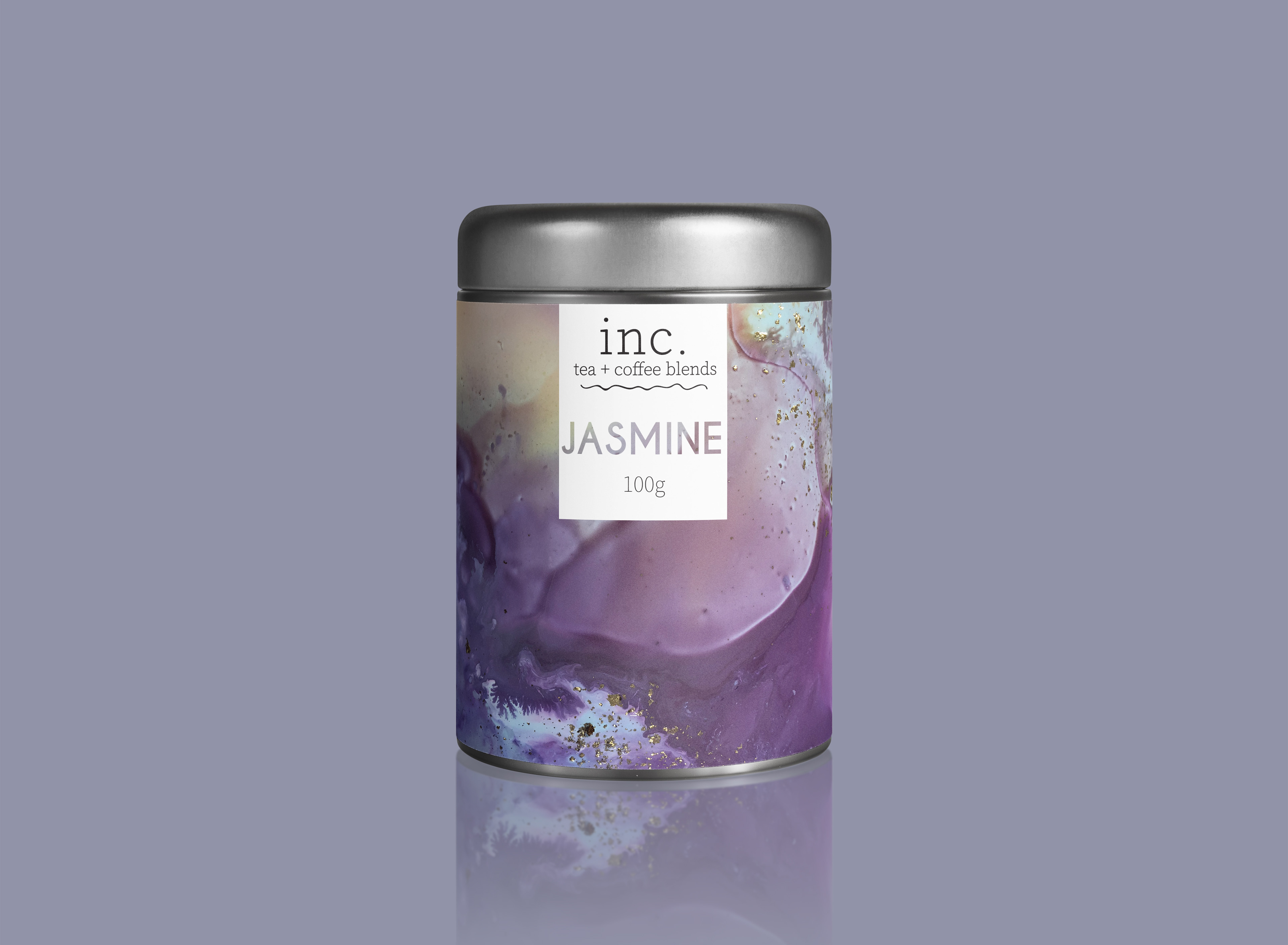 Tea canister design including alcohol ink artwork as the background graphic. Original artworks made with Copic alcohol inks, methylated spirits, gold leaf, acrylic ink on yupo paper.