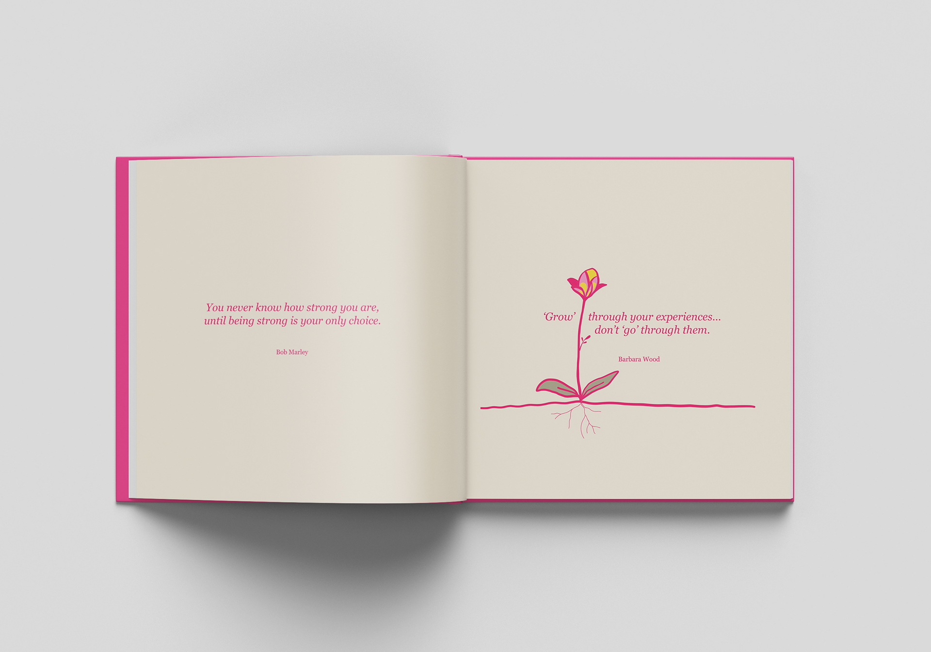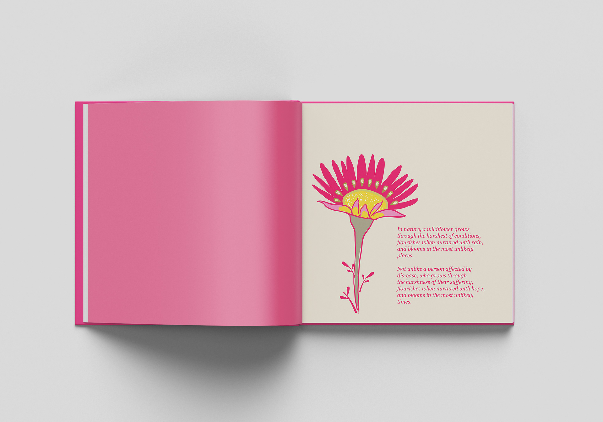 WILDFLOWER- Client: Barbara Wood from 'boobbuddies'. Hand lettering, illustrations and internal layout design for a 68 page affirmation book, dedicated to supporting those affected by cancer and dis-ease.